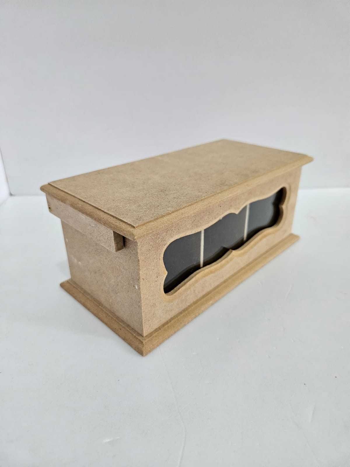 Caixa de chá 3 lugares com vidro- 9x11x23cm- MDF