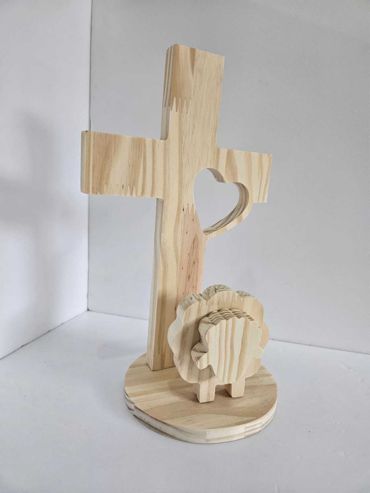 CRUZ COM OVELHA PINUS- 32X19X15cm