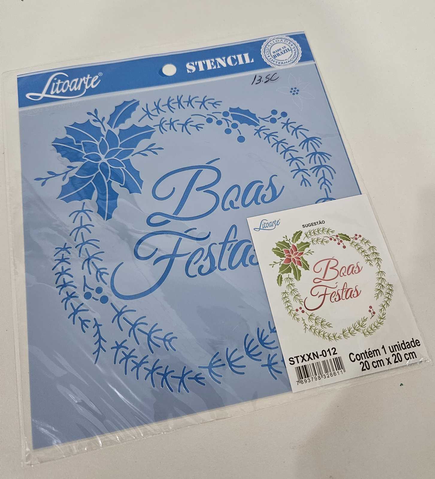 Stencil Boas Festas 20x20cm
